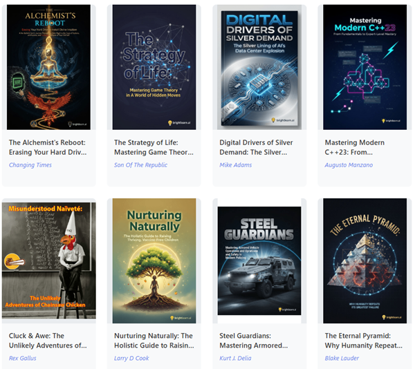 In effect, we have built an engine that allows anyone to become a published author with commercially-sellable digital books, with all the research, writing, editing, cover illustration and packaging all completed in minutes, by the most knowledgeable AI engine in existence (Brighteon AI).